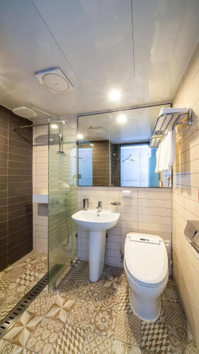 В номере вы найдёте душ и тапочки. Оснащение зависит от выбранной категории номера.