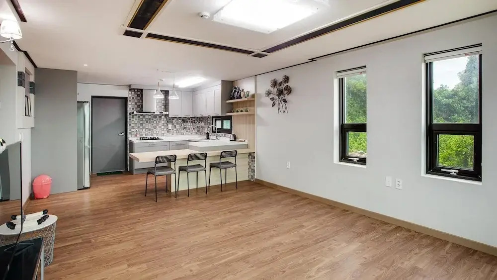 Отель Seogwipo Sungsan Golden Village Pension 3 звезды, адрес на карте Согвипхо, 464-2, Nango-ro, Seongsan-eup, с характеристиками номеров и доступностью онлайн бронирования на ресурсе vashotel.ru , цены проживания и удобства.