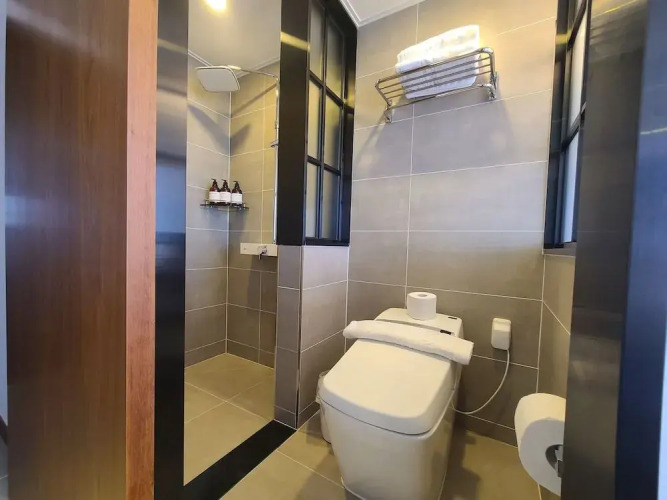 В номере гостей ждут душ, телевизор и тапочки. Оснащение зависит от выбранной категории номера.