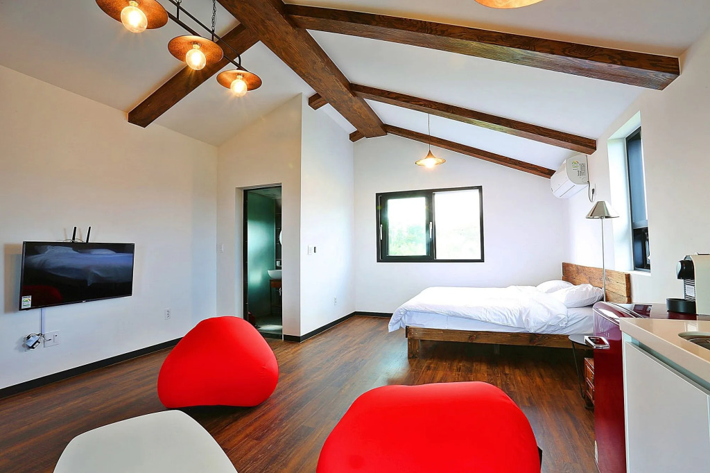 Номер уютно обставлен и оснащён необходимым, чтобы отдохнуть после долгого и насыщенного дня. Имеются душ, телевизор и тапочки. Перечисленные услуги есть не во всех номерах.