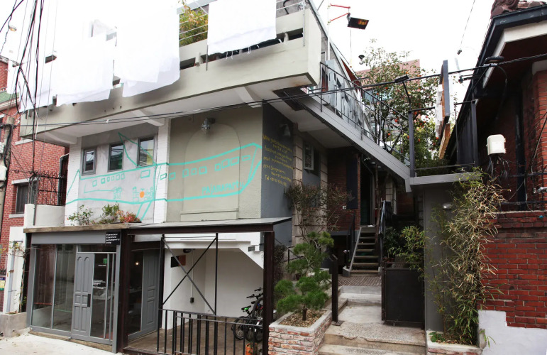 Отель Hongdae Guesthouse Pajamaparty 2 звезды, адрес на карте Сеул, 157-6 Seongmisan-Ro Mapo-Gu, COREA DEL SUR, с описанием номеров и возможностью онлайн бронирования на сайте vashotel.ru , стоимость проживания и удобства.