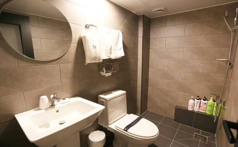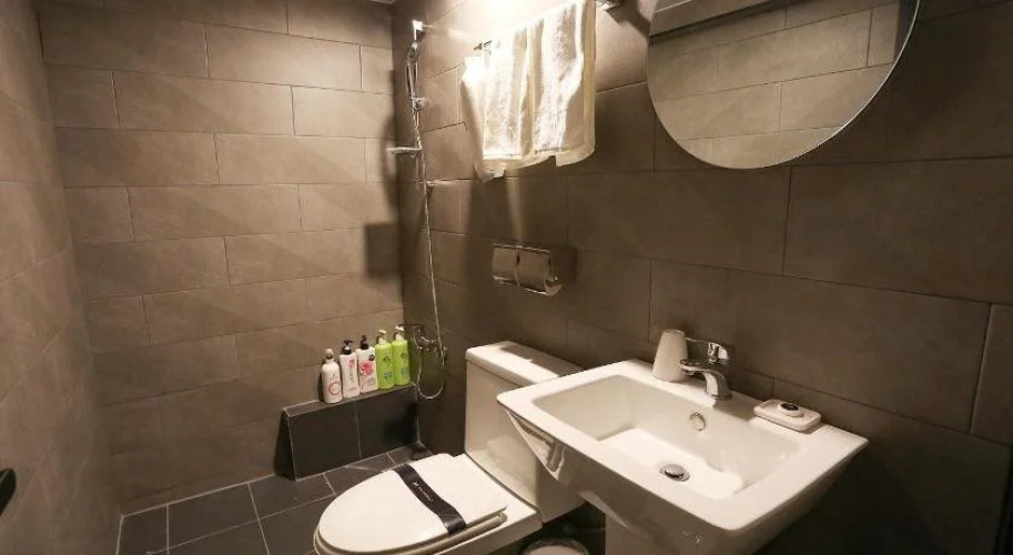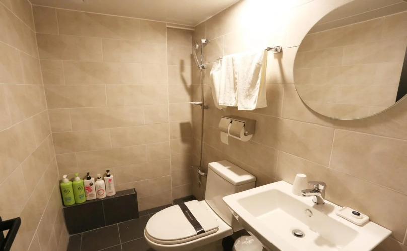 В номере вы найдёте душ, телевизор и тапочки. Оснащение зависит от выбранной категории номера.