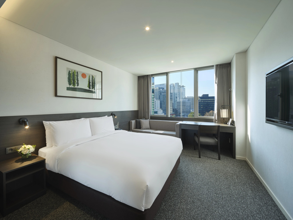 А ещё в распоряжении гостей прачечная, химчистка, гладильные услуги, пресса, прокат автомобилей, сейф и консьерж. Сотрудники отеля поддержат беседу на английском и корейском.