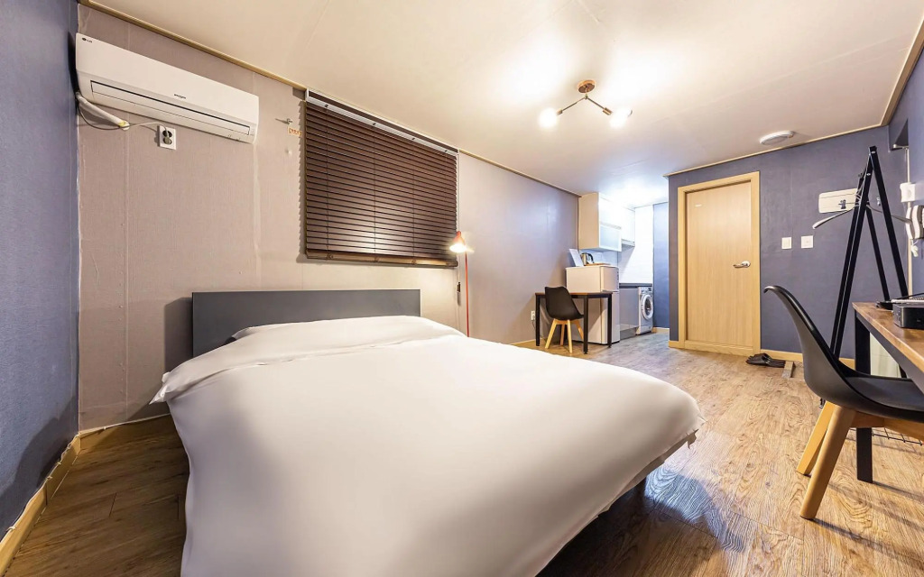 Удобно для гостей с ограниченными возможностями: на верхние этажи гостей поднимает лифт. Дополнительно: прачечная, сейф и консьерж. Персонал апарт-отеля говорит на английском и корейском.