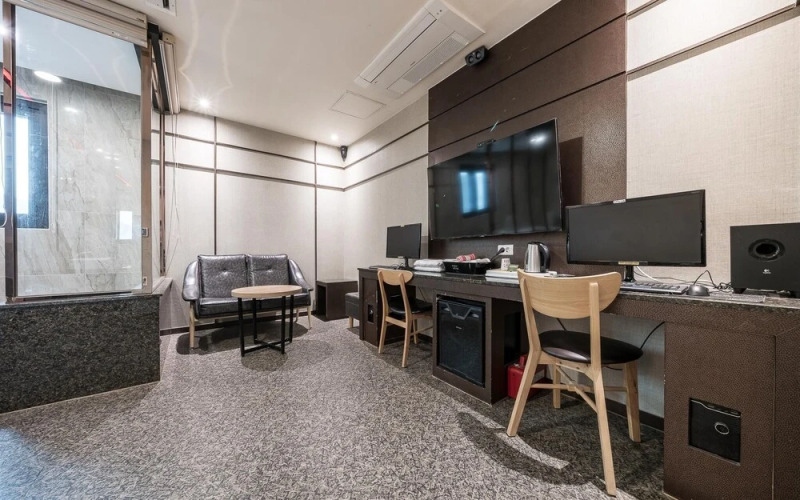 В номере вы найдёте телевизор. Оснащение зависит от выбранной категории номера.