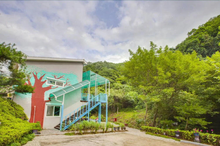 Отель Yangpyeong Flowery Cloud Pension 2 звезды, адрес на карте Янпхён, 76, Jungwonsan-ro 576beon-gil Yongmun-myeon, с описанием номеров и доступностью онлайн бронирования на сайте vashotel.ru , стоимость проживания и удобства.