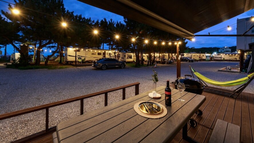 Отель Hajodae Camping Car, адрес на карте Янг-Янг, 41, Hajodaehaean-Gil, Hyeonbuk-Myeon, с описанием номеров и возможностью онлайн бронирования на ресурсе vashotel.ru , цены проживания и удобства.